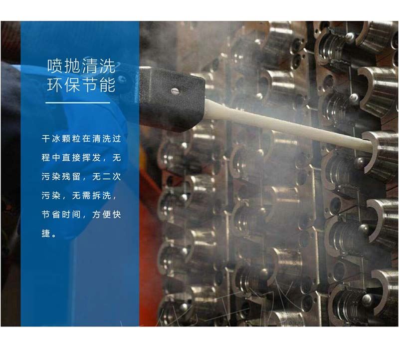 3、用于工業(yè)清洗,由于干冰容易升華,所以在工業(yè)生產(chǎn)中可以用于模具表面的臟污清洗等,且對設(shè)備無損害。